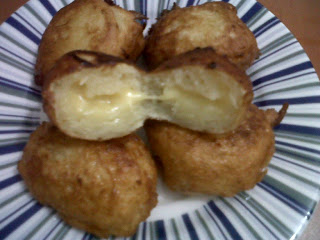Dipikir-pikir tuh tape mo dibikin apa ya? mau di juice, blender lagi rusak, Bap belom sempet beliin lagi :( lagian juga ga terlalu suka...mo digoreng balut tepung, kok biasa banget ya? trus inget masih punya keju kratf quickmelt trus punya ide di uleni bareng aja dan diisi kejunya..hihihi ini first time bikinnya lho...main campur aja, bahan-bahan ga di timbangin, jadi pake rumus kira-kira ;p